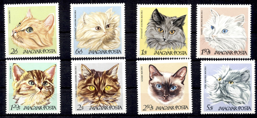 1968 Cats, Set of 8 stamps. Designs: 20f, Domestic cat. 60f, Cream Persian. 1fo, Smokey Persian. 1.20fo, Domestic kitten. 1.50fo, White Persian. 2fo, Brown-striped Persian. 2.50fo, Siamese. 5fo, Blue Persian
