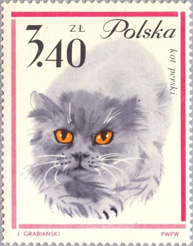 1964 - Cats in Natural Colors; Black Inscriptions, Set of 10. Designs: 30g, 40g, 60g, 1.55z, 2.50z, 6.50z, Various European cats. 50g, Siamese cat. 90g, 1.35z, 3.40z, Various Persian cats. 60g, 90g, 1.35z, 1.55z, horiz.