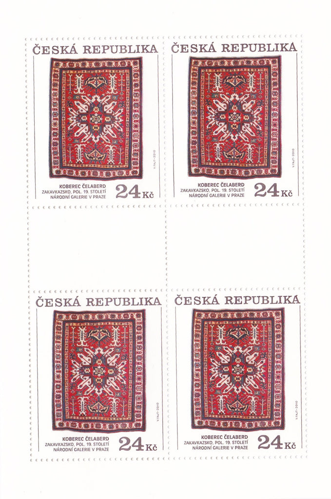 2010 - 19th Century Transcaucasian Carpets, 2 Miniature Sheets, 4 stamps each. Designs: No. 3448, 21K, Kasim Usak carpet. 24k, Celaberd carpet