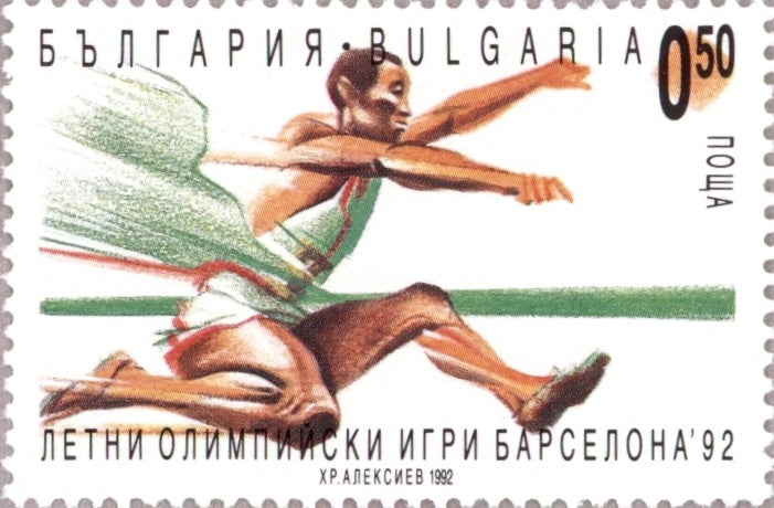 1992 Summer Olympics, Barcelona, Set of 4. Designs: 50s, Swimming. 50s, Long jump. 1 l, High jump. 3 l, Gymnastics.