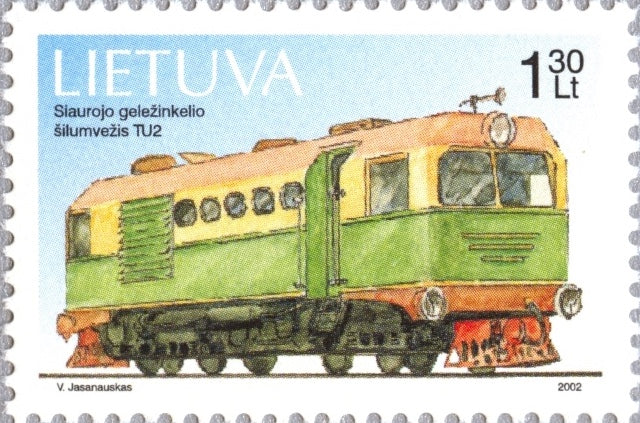 2002 Narrow-Gauge Railways, Set of 2. Designs: 1.30 l, TU2 diesel locomotive. 2 l, PT4 steam engine.