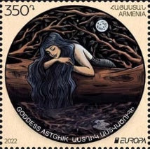 2022 Europa: Stories and Myths, Miniature Sheet of 8. Design: Astghik, the Goddess of Love, Beauty and Water.
