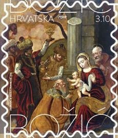 Features the Christmas scene, The Adoration of the Magi from the Duke's Palace. Complete booklet of 10 self-adhesive stamps